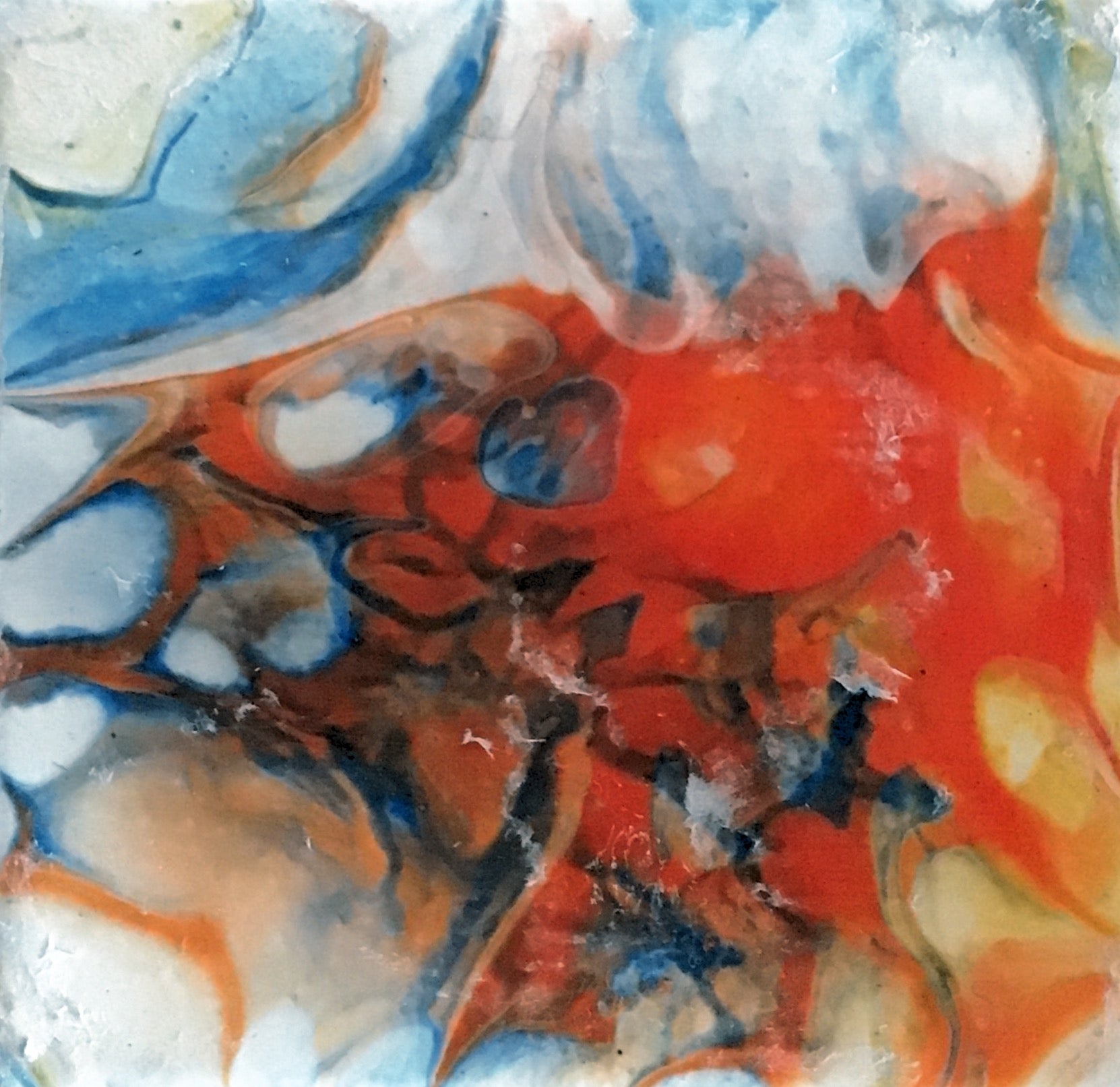 A 4x4 pour featuring vibrant orange and blue tones
